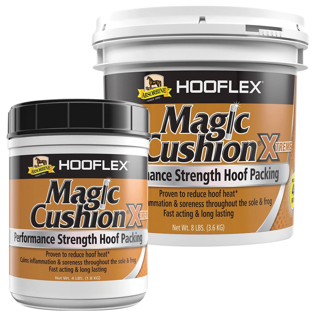 Magic Cushion Xtreme by Absorbine uses a higher concentration of ingredients than the original to provide faster, stronger relief for performance horses. Magic Cushion hoof packing helps support hooves in several ways including relieving sole bruising and post-trimming soreness, treating abscesses, and fighting bacterial and fungal infections in the hoof. It can be used as needed, or packed under a shoe and pad and left in place through the shoeing cycle.