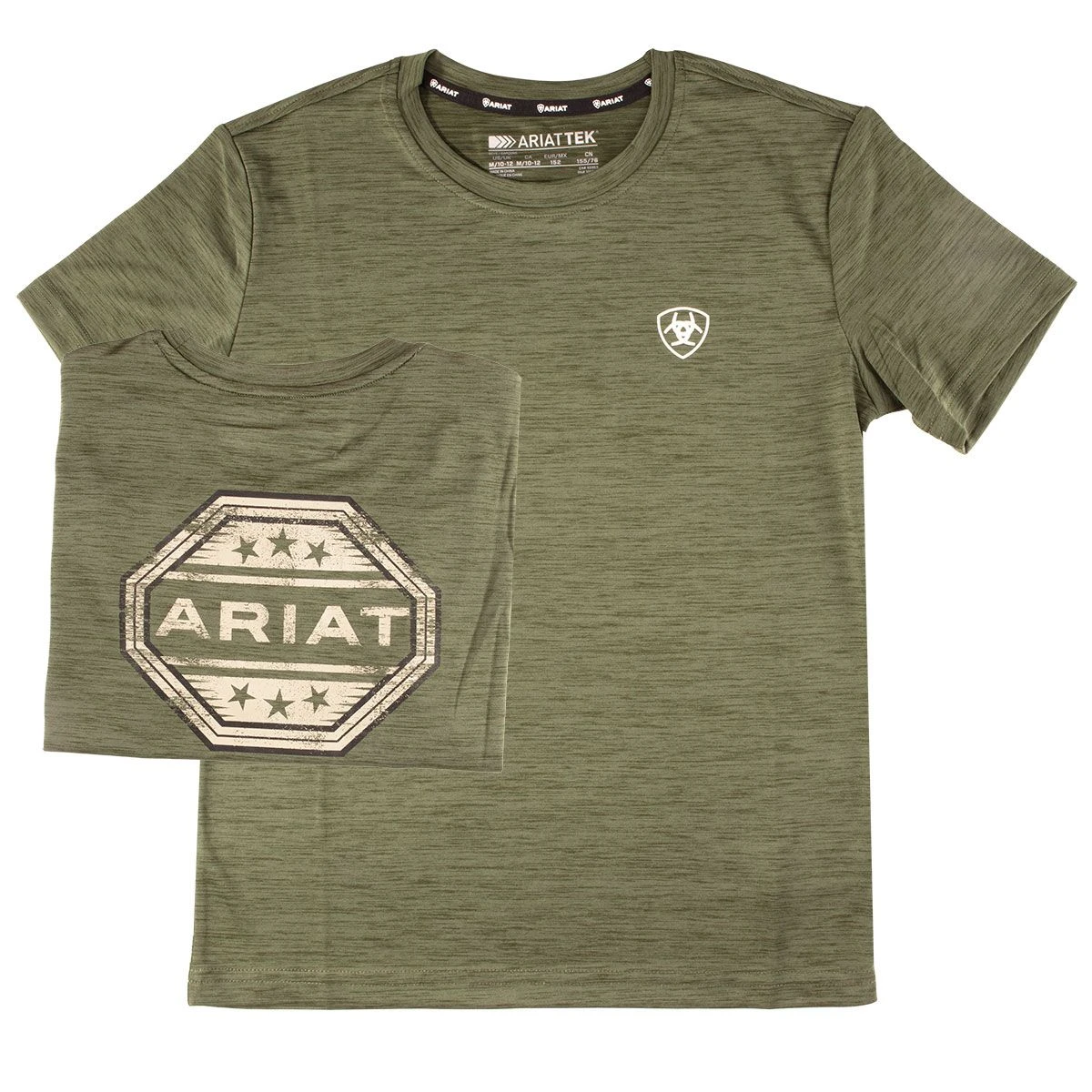 The Ariat Charger Stamp Boys Tee is meant for all day wear. This athletic styled tee is made from a heathered polyester jersey which is soft and breathable. The moisture wicking material will keep you comfortable while working in the barn or in the saddle.