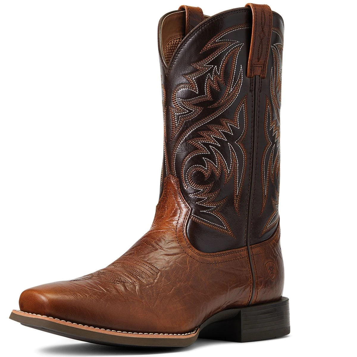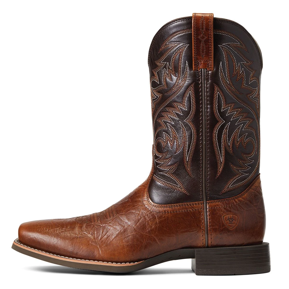 Sturdy, Stilish and Comfortable is the Ariat Sport Herdsman Mens Western Boot in Chaga Brown. This lightweight styled boot is meant for all day comfortable wear. With a full grain leather outer and air mesh interior lining, this boot will keep water out and not trapped inside. In a distressed brown color with a five row stich pattern it is classic and everything you would want in a cowboy boot!