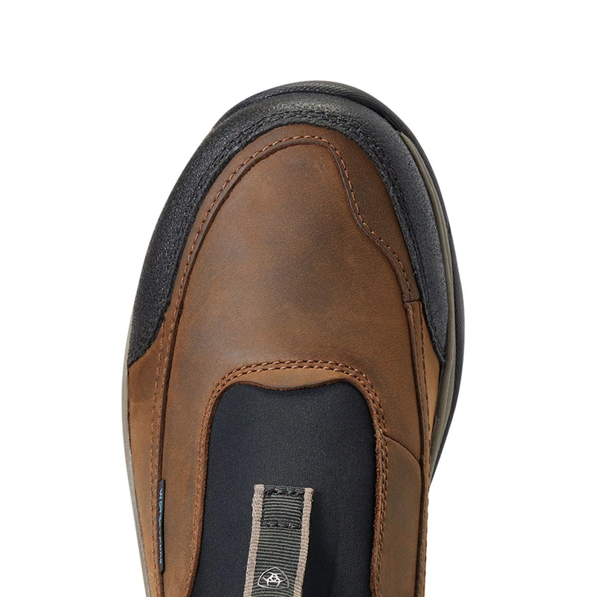 Designed to pull on and off effortlessly, the Ariat Terrain Ease H2O Mens Endurance Riding Shoe makes easy work of your outdoor jobs. Made with a lightweight leather and neoprene it is fully waterproof. This boot is still comfortable and breathable with the neoprene interior and moisture wicking lining. Whether you’re walking the pups, turning out your horse or cleaning its stall, this boot has you covered.