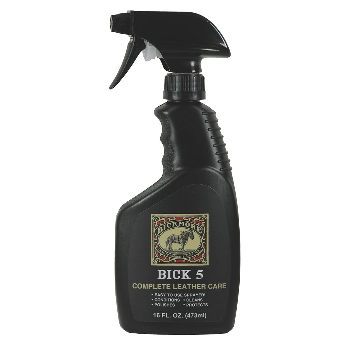 Bick 5 is a complete care leather product for all of your tack, harness and leather goods. The easy to use spray bottle makes this product great for larger areas such as furniture or leather car seats, and for getting in all the nooks and crannies of any exotic leather! Stronger than Bick 4, we recommend it for your heavy duty cleaning and conditioning needs.