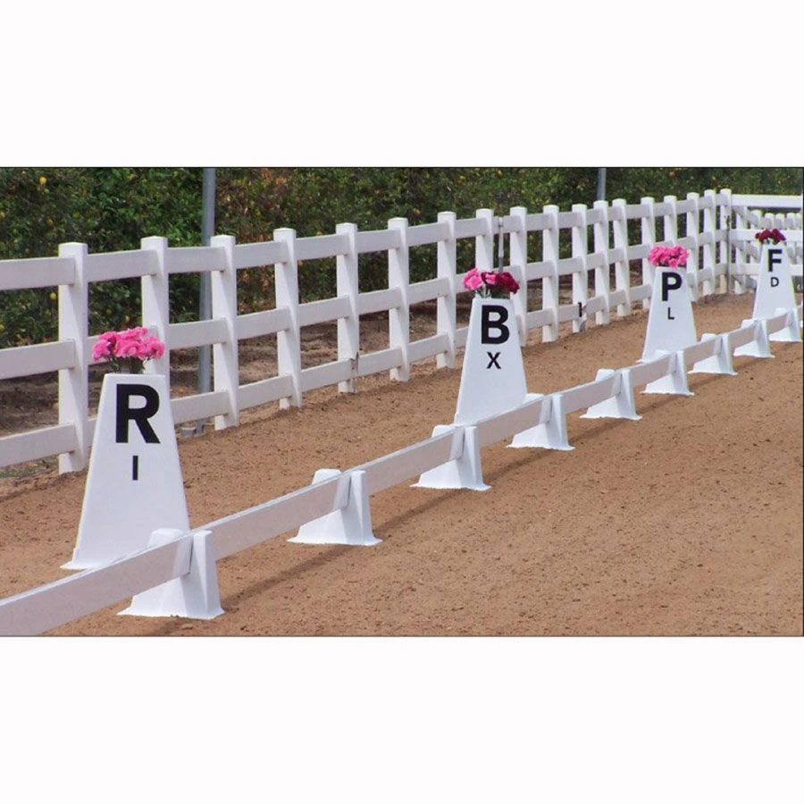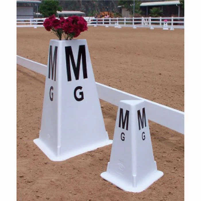 Tower Letters for Dressage Arenas by Burlingham Sports are exceptional stable cones. These letter markers are 30″ tall with a 26″ base that makes them easy to spot and they can with stand the windiest conditions. The letters are marked high enough to be seen over most dressage arena rails. The unique design prevents the cones from sticking together when stacked. The Tower Letters have a recessed cup at the top which allows you to decorate them with flowers or a flower pot.