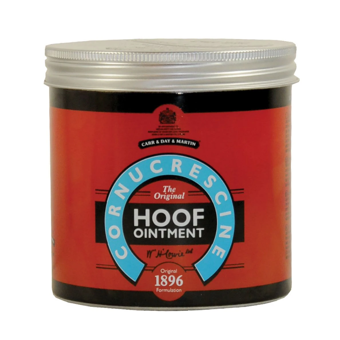 Carr & Day & Martin Cornucrescine Hoof Ointment. Massage into the coronet band to promote healthy hoof growth. Maintains optimum hoof condition and aids re-structuring & growth of the hoof. Application by hand or with a toothbrush stimulates keratin producing cells. Hoof Ointment also aids re-growth of hair after rubs or scarring.
