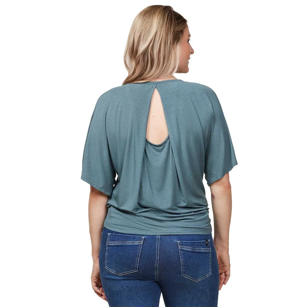 The EQL Luxe Draped Back Dolman Ladies Shirt is a beautiful twist on the traditional dolman top, combining elegant flowing sleeves with a functional and flirty draped back. This shirt is cut to show a bit of skin, but not your bra straps, and the soft material has a flowing loose fit that is perfect to mix and match with your favorite pants.