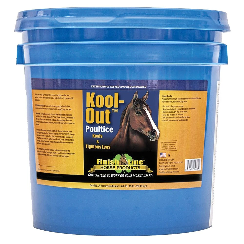 Kool Out Poultice by Finish Line is a mild, non irritating formula for cooling & tightening your horse’s legs after strenuous exercise or competition.