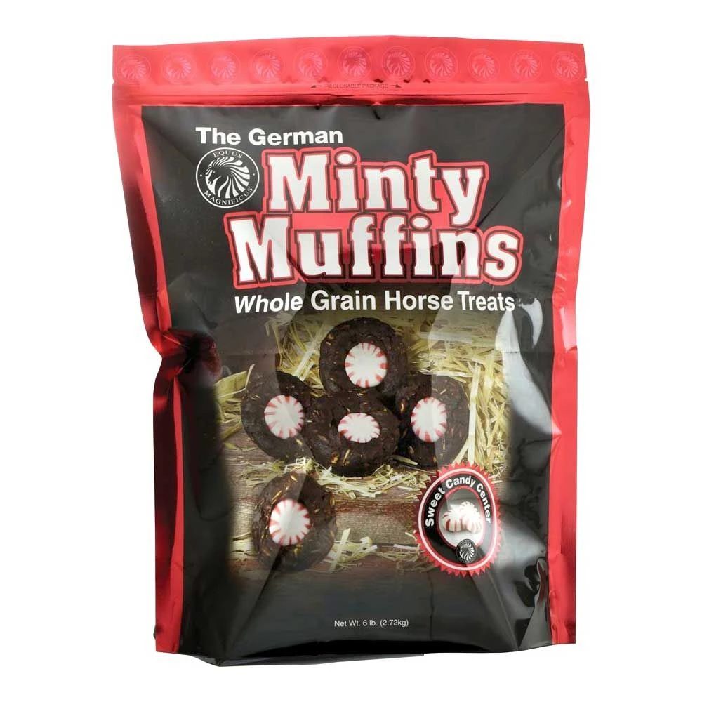 The German Horse Muffin by Equus Magnificus are a deliciously decadent treat crafted with the finest, all natural ingredients. These moist and chewy treats are perfect as a reward with an extra tasty touch – a delicious Brach’s mint in the center!