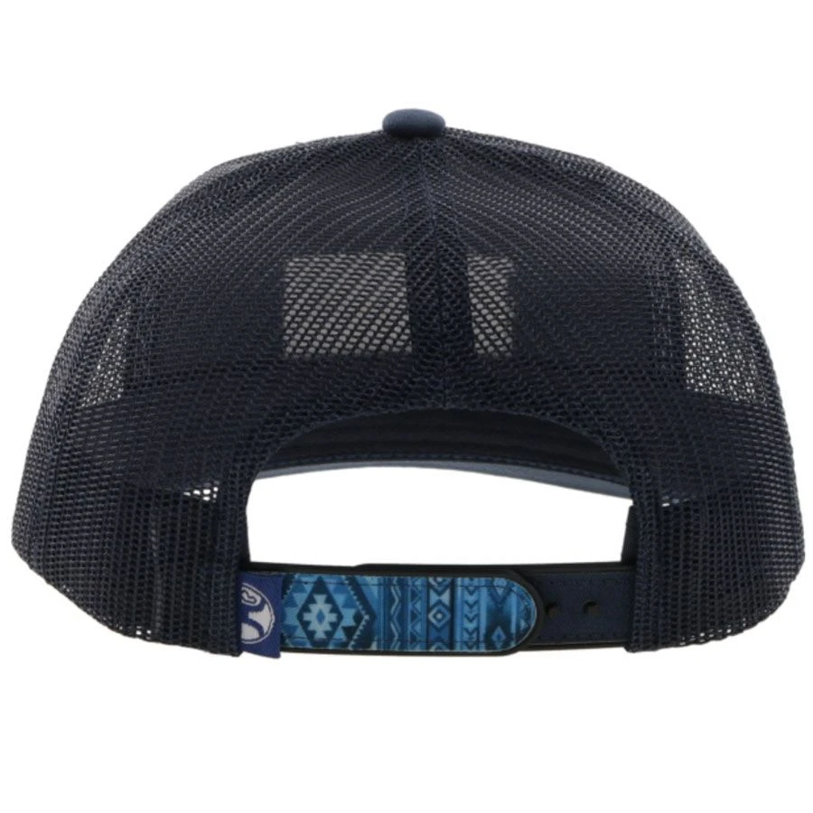 The Hooey Doc Blue Trucker Hat features a blue Aztec front with black base with a Hooey Traditional blue front logo patch. This mid profile hat as a one size fits most with 5 flex fit panels and back adjustability. With a traditional front bill and back flex mesh, this hat is comfortable and breathable.