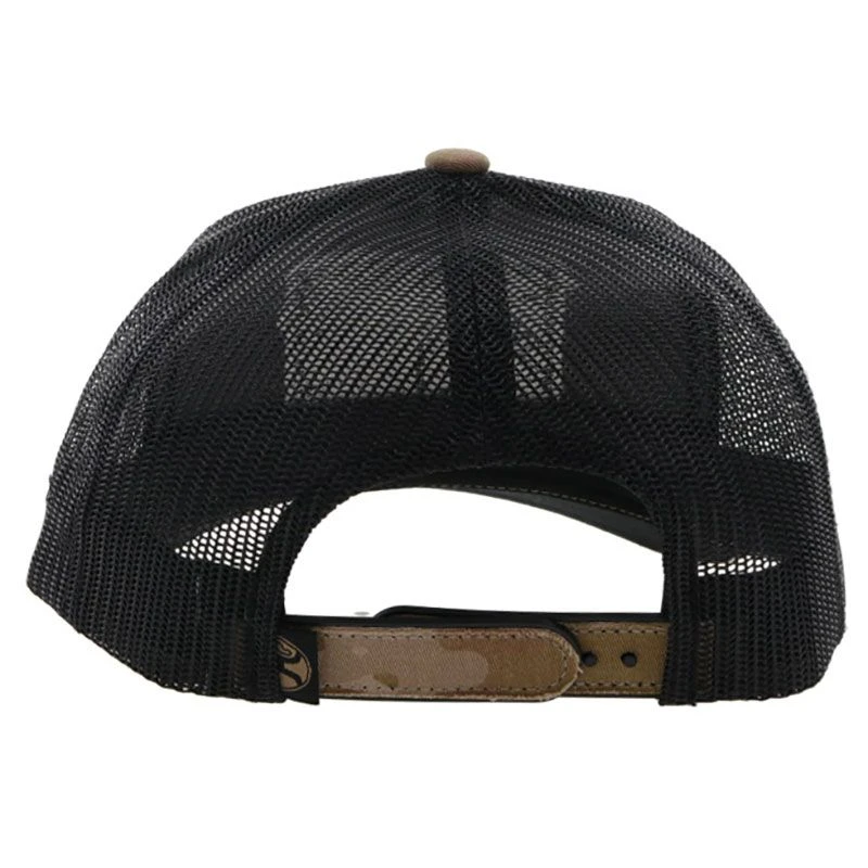 The Hooey Liberty Roper Camo Trucker Hat features a camo pattern with a black flag patch on the front. This mid profile hat as a one size fits most with 5 flex fit panels and back adjustability. With a traditional front bill and back flex mesh, this hat is comfortable and breathable.