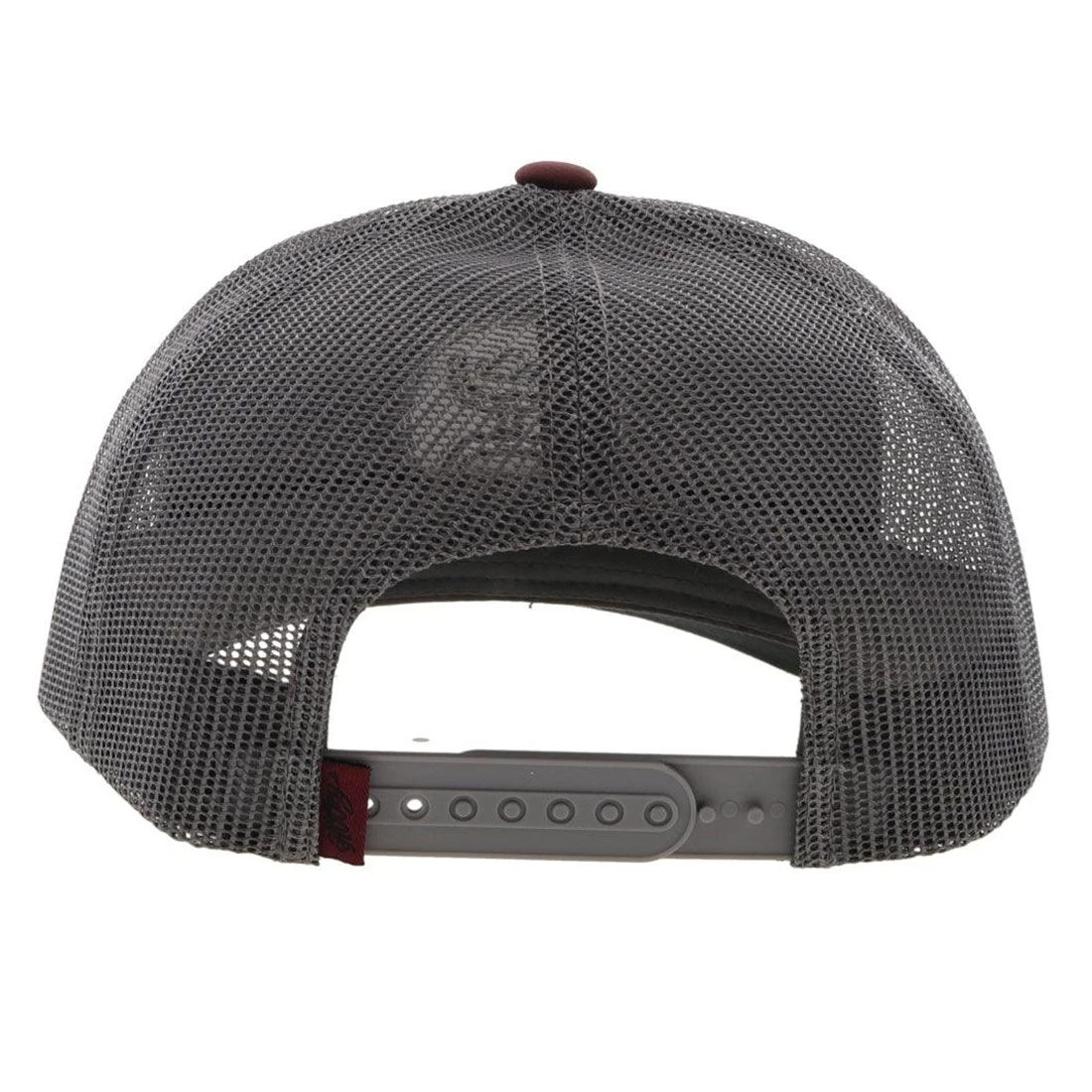 The Hooey Classic O Trucker Hat in Burgundy and Grey features a classic black logo. This mid profile hat as a one size fits most with 6 panels and snap closure. With a traditional front bill and back mesh, this hat is comfortable and breathable.
