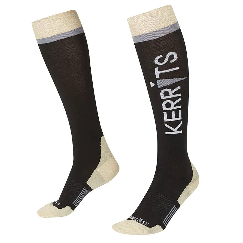 Kerrits Logo Knee Socks are the perfect lightweight cotton blend sock for your tall boot needs this slightly thicker sock is great for spring, fall and winter riding. Offering a reinforced heel and toe in knee high length, this cozy sock will keep you comfortable all day!