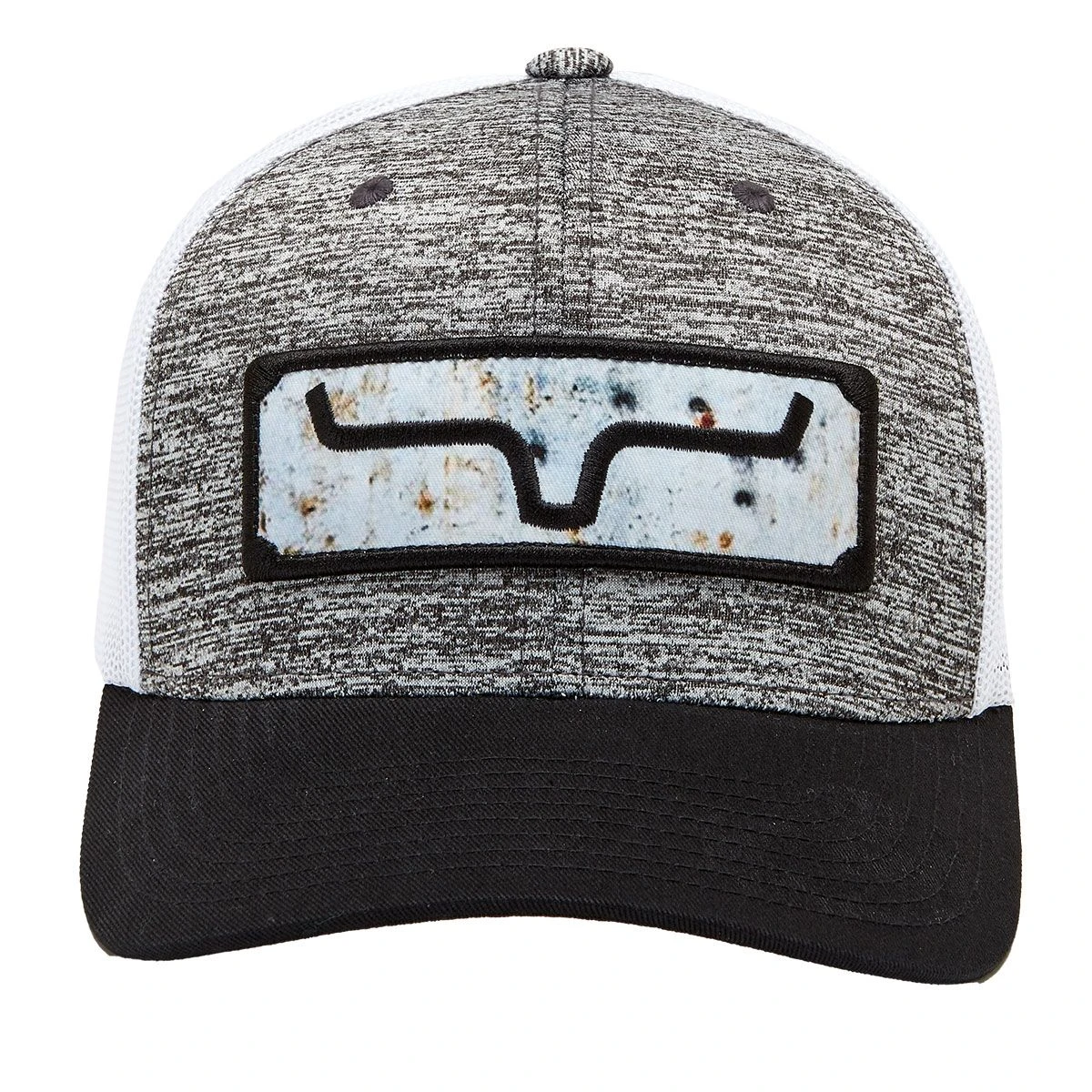 Kimes Ranch Alberto Trucker Baseball cap features an attractively heathered cotton twill front and polyester mesh back for cool comfort. Accented by a sublimated print and embroidery combination Kimes logo patch in true western style. Kimes Ranch brand will bring you back to your true western roots in western wear that combines fashion forward trends with function for superior fit, classic style and uncomplicated western design.