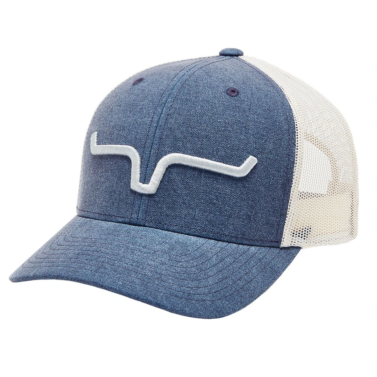 Kimes Ranch Upgrade Weekly Trucker Baseball cap features a richly heathered color wool melange front and polyester mesh back for cool comfort. Accented by 3D embroidered Kimes logo horns in true western style. Kimes Ranch brand will bring you back to your true western roots in western wear that combines fashion forward trends with function for superior fit, classic style and uncomplicated western design.