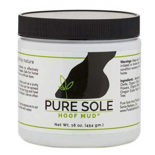 Treat hoof infections with natural Pure Sole Hoof Mud. Made with herbs, oils and apple cider vinegar, this mud is ideal for treating thrush, seedy toe, heel infections, cracks and hoof wall separation. Pure Sole is easy to use as it’s made with Bentonite Clay and can be used with shoes or under pads as well. Hoof Mud can be used for horses with sore soles as well. Effective and natural, no staining either!