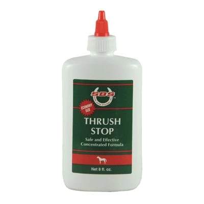Thrush Stop by SBS Equine creates an antiseptic barrier between thrush and healthy tissue by actually bonding to the hoof protein for long lasting protection.