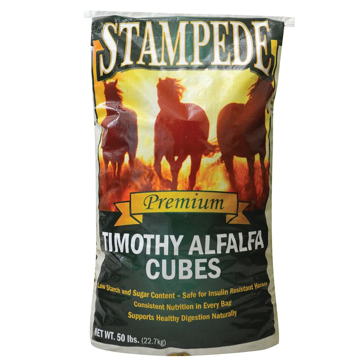 Stampede hay cubes are harvested during peak times and are naturally sun cured to provide maximum palatbility.