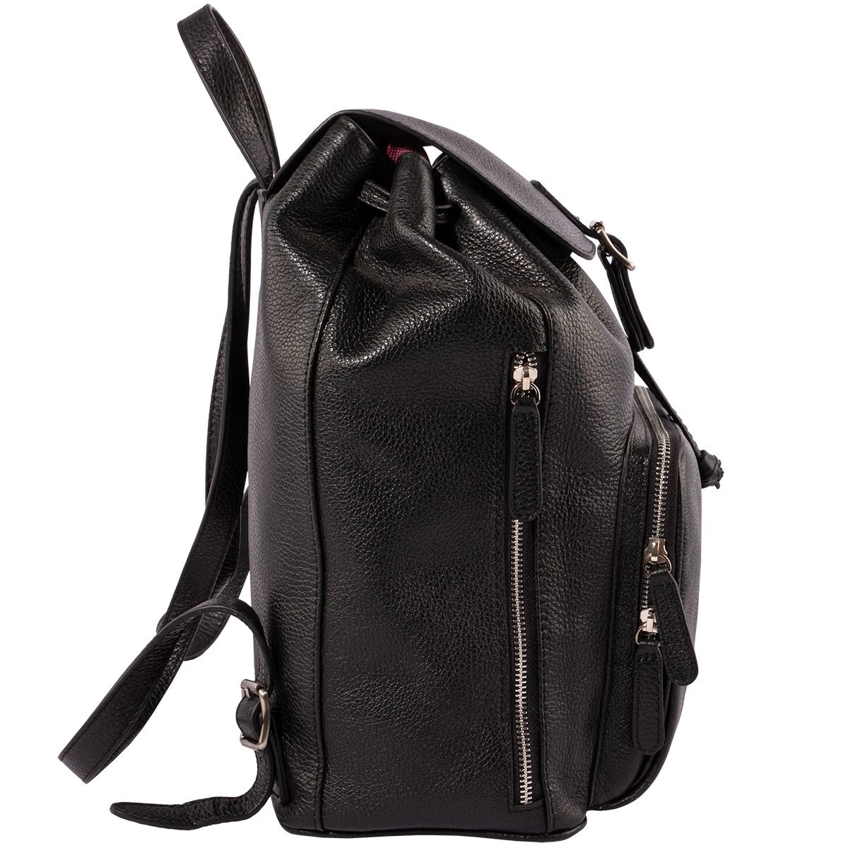 - Multiple storage compartments, including interior pouch, exterior zip pouch, and hidden side zipper pocket