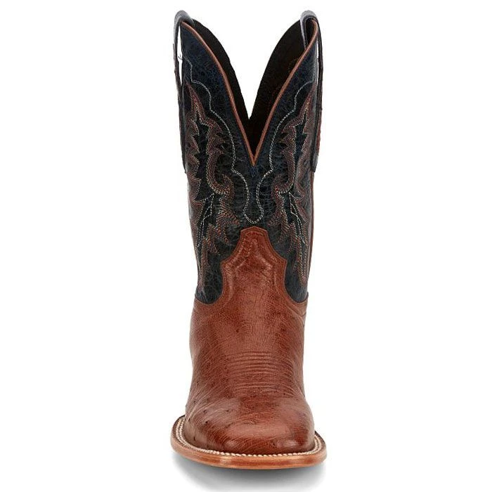 Tony Lama Murillo Mens Western Boot from the 1911 Collection is a timeless boot crafted from premium smooth ostrich leather. These beautiful boots feature a Brandy Smooth Ostrich vamp and rich navy goat upper with elegant stitching details offering an attractive look both in the arena and on the town. The walking heel is designed for comfort yet built for work with the spur ledge. Tony Lama 1911 artisan boots are constructed using only premium exotic and full grain leathers and the finest boot making techniques, each pair is a true work of art, meticulously built by hand, always inspiring and recognizable.