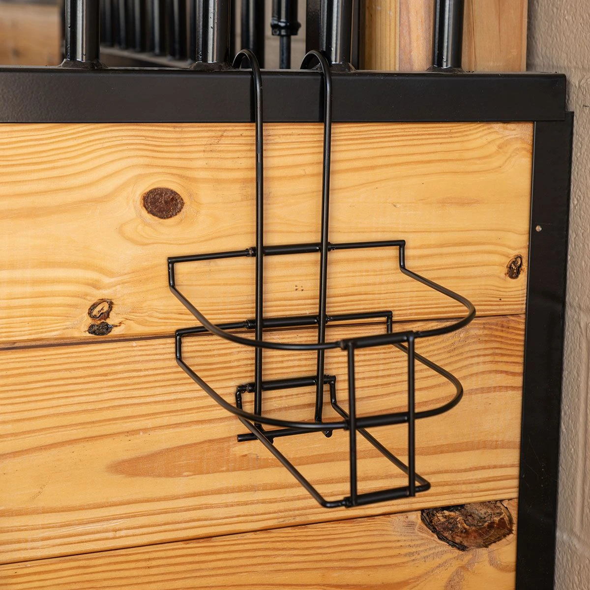 Are you tired of carrying heavy gallon containers to and from your horse’s stall, or worse, knocking them over and creating a big mess? The Tough 1 Collapsible Bottle Holder is a must-have for any barn, trailer, or away at shows. Its space-saving design and sturdy powder coated steel ensured ease of use and many uses ahead. Perfect for keeping any grooming, fly, or medicinal spray close at hand without compromising bottles falling or breaking. Fits easily over stalls, fences, and gates. Comfortably fitting a single gallon containers, these are perfect for holding supplements, large fly sprays, and other bulk liquids up and out of the way. Imported.