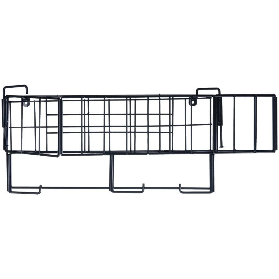 This convenient, portable barn esssential is a must have for any stable! The Tough-1 Portable Collapsible Basket with Bridle Hooks is a combo tack holder and storage unit all in one. Made of heavy steel construction that’s designed to hang over standard 2″ stall walls, the 6″ deep basket is perfect for holding treats, bottles, brushes, boots, and more. The sturdy 3 hooks underneath are designed to hang bridles, halters, leads and more, keeping your aisleways clean and organized. Folds flat for travel and storage, making it a perfect accessory when traveling for shows and more. Can also be permanently mounted with its 2 pre-drilled holes in lieu of mounting over a stall wall.
