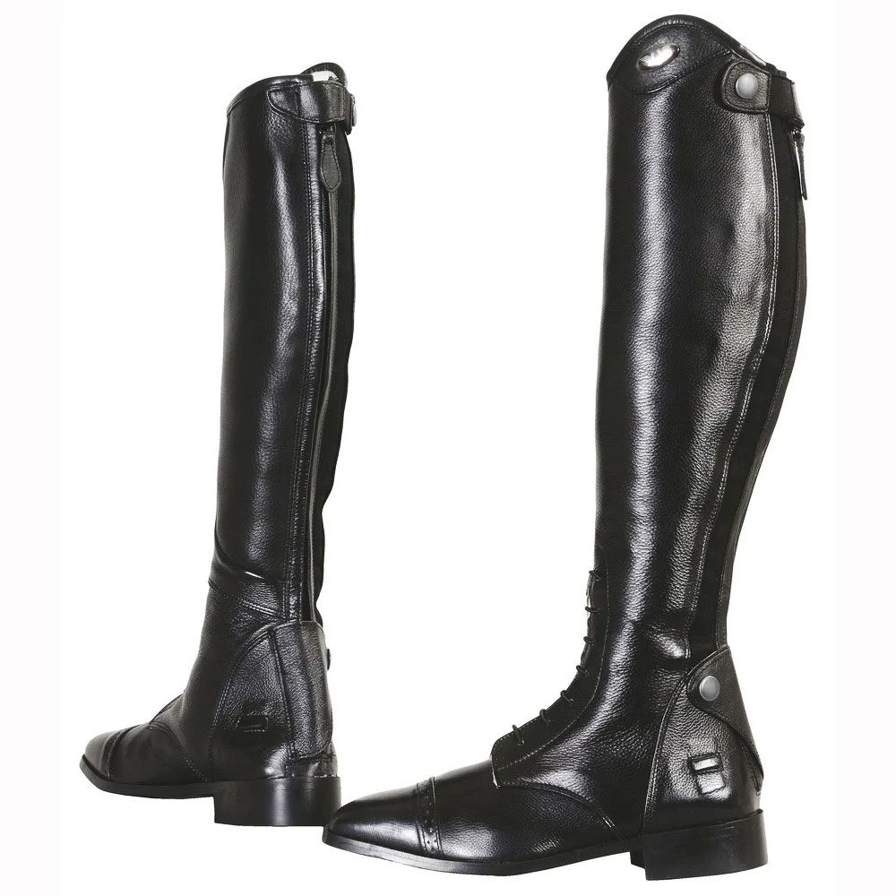 TuffRider Regal Ladies Field Boots are crafted from ultra-soft leather for a luxuriously comfortable broken-in feel right out of the box. An attractive Spanish topline and punched toe detail on this luxe textured leather provide you a gorgeous on-trend look whether in the practice or show arena. The durable grip inside calf and contoured ankle offers riders excellent support in the saddle, while the flex rubber outsole and memory foam footbed ensures comfort both in and out of the saddle. The Regal Ladies Field Boot is an excellent value leather field boot with a stylish look that equestrians at every< level can appreciate.